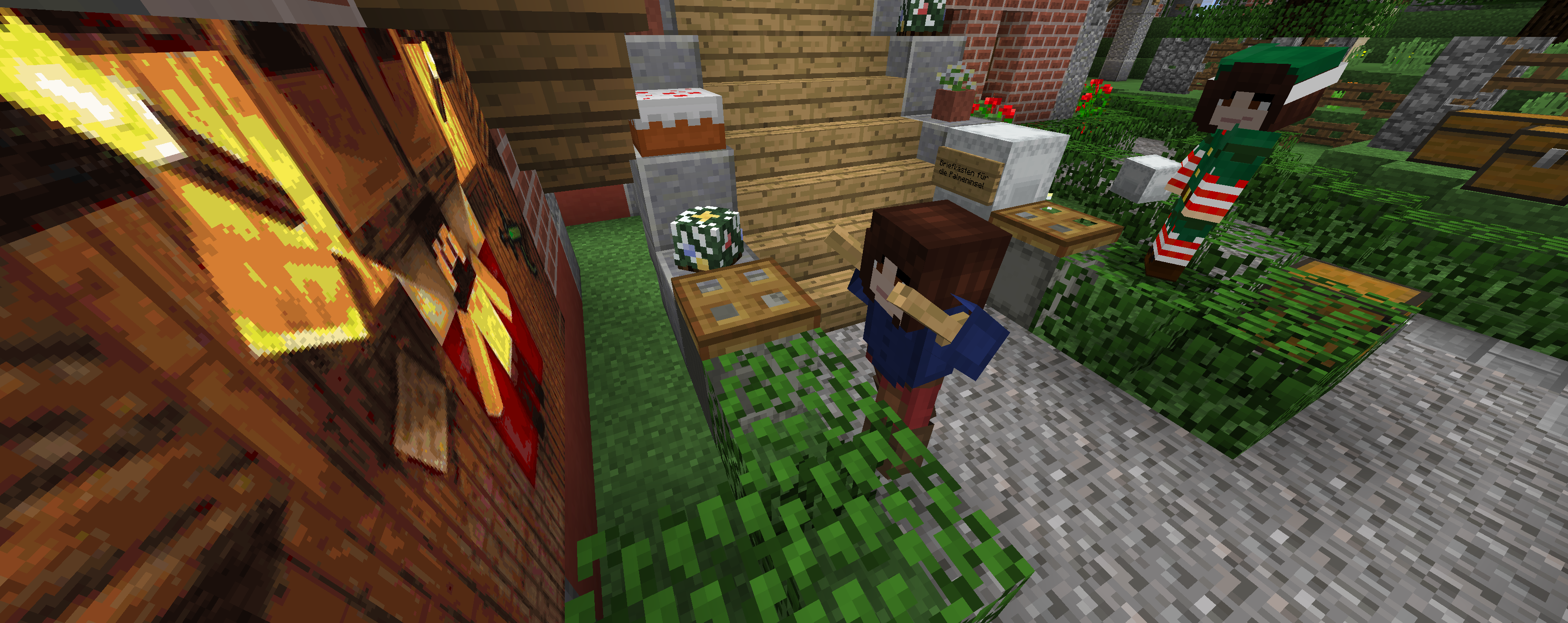 Mein geheimer Zwilling hat sich hierher verirrt und verkauft jetzt Weihnachtsdekoration. Wo sie das Kostüm gefunden hat ist fraglich.