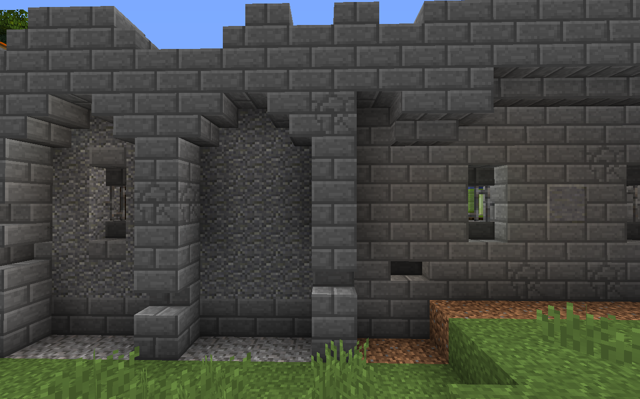 Wenn die Häuser schon so gut mit Steinziegeln ausgebaut sind, ist die Kirche garantiert nicht aus Holz und Steinen, sondern zumindest aus edlerem massiverem Mauerwerk  wie  Andesit, Diorit und evt. Cobblezäune. Eine Kirche hebt sich in der Regel immer als etwas Besonderes ab.