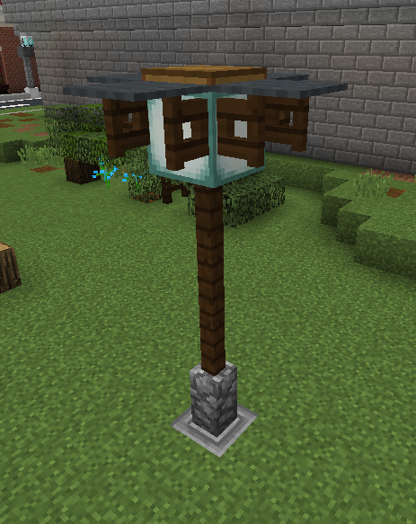 Die Redstonelampen im Dorf sind unserer Meinung nach verglichen mit dem Baustil zu modern und zu klobig geraten. Wir würden beispielsweise so etwas empfehlen:
