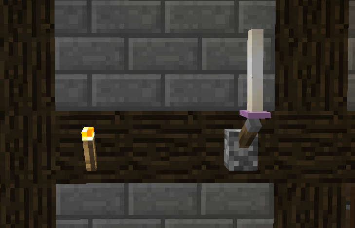 Wenn ihr euch schon gegen Fackeln und für einen komplett anderen Leuchtblock entscheidet, weil er kerzenähnlicher ist, solltet ihr diesen vernünftig einsetzen. Dies kann mit senkrechtstehenden Kerzen passieren, aber nicht mit zwischen zwei Blöcke eingeklemmte oder von der Decke baumelden Stäben. Ein einzelner Hebel kann Wunder wirken oder ihr benutzt eben Fackeln, die passen auch gut (siehe Bild)!